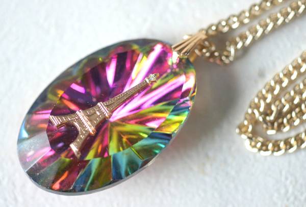 ドイツ製 ヴィンテージ ガラスカボションエッフェル塔ネックレス