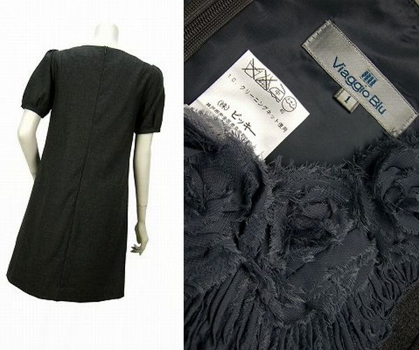 OP)美品★ビアッジョブルー ViaggioBlu ビッキー★綺麗お花リボン刺繍モチーフ×パフスリーブ★可憐ワンピース*1(Sサイズ 7号 36)ウール
