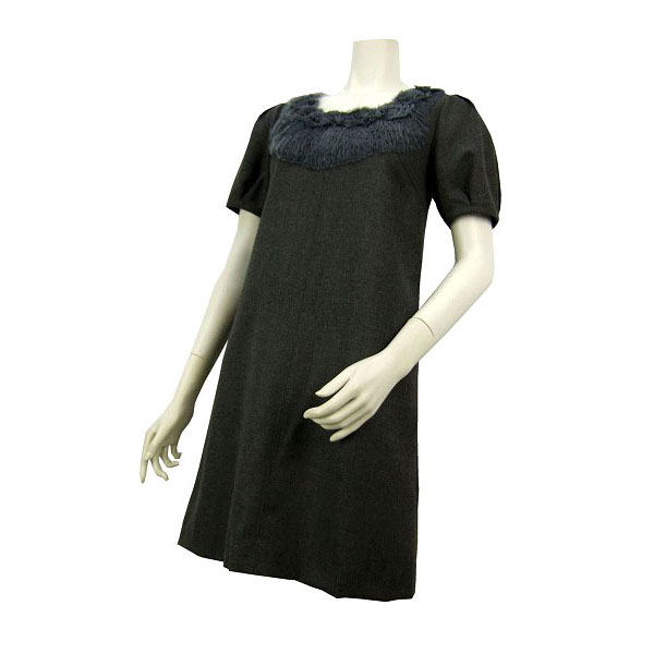 特徴:羨望のリボン刺繍が施された綺麗ワンピースです。上質しなやか霜降りウール生地(濃グレー系)!デコルテを飾る豪華な切りっぱなし艶シフォン素材(フリンジ風)お花モチーフ&アコーディオン風×パフスリーブ!!フェミニンな上質ミニワンピースです。 ---↓ここにサイズ記入----