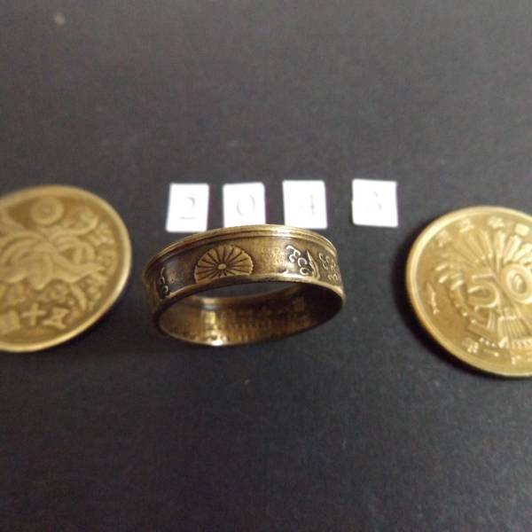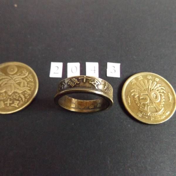 14号  コインリング  50銭黄銅貨 ハンドメイド指輪 送料無料 (2043)菊紋 国旗 ステッカー シール 旭日