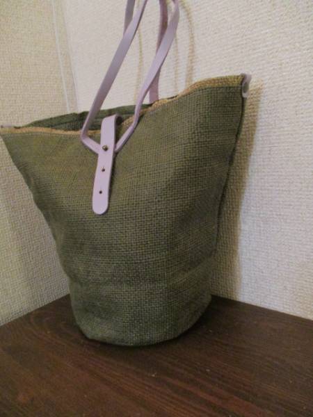 | 商品紹介 | カーキの麦わらの編みこみ素材に 防水コーテイングがされています。 持ちては薄紫のレザー素材になります。 小型でちょっと出かけるのによいです。 内側は底部分は薄紫のコットン素材です。後は麦わら素材 入り口は ベルト式になります 外ポケット なし 内ポケット 2つ折り財布サイズ1 パスケースサイズ1 携帯サイズ1(3つともチャック等なし) *薄紫のコットン素材 |