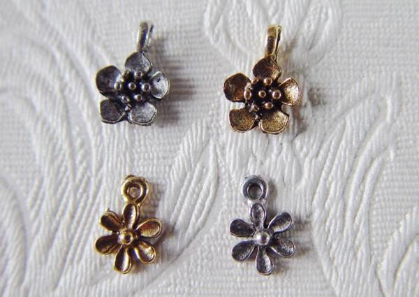 ■即決■お買い得!ミニフラワー4個セット・ピューターチャーム
