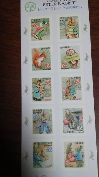 H27 ピーターラビットと仲間たち 52円切手 シール式シート になります。