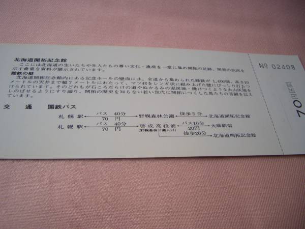| ◎【国鉄バス】北海道開拓記念館シリーズNo.1乗車券■s48 | |