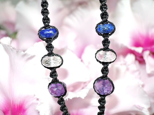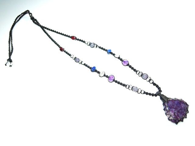ペンダントトップは天然の石【 チャロアイト 和名:チャロ石 】 チャロアイトはスピリチュアルなストーン。 3大ヒーリングストーンの一つとも言われています。 (チャロアイト・スギライト・ラリマー) 浄化にとても優れた石で、持つ人を純粋で優しい気持ちにし、心身の働きを正常にする力があるといわれます。 その為、清く正しい考え方をしたい時に持つと良いと言われています。 精神と感情もバランスを保ち融合させ、互いに高め合いながら発展するよう導く力があります。 まるで インクをこぼしたような模様が表面に現れている石で実際にとても不思議な感じのる石です。 こちらのネックレスは常に体につけていられる密着感が魅力です。 ただ飾るだけではなくそれは体の一部分として感じられます 制作はすべて手作業で、石を包み込むようにして丁寧に編みこんでいます。 こちらはインドの聖地、パワースポットとしても有名なプシュカルとゆう地にてババとの共同製作です。(ババとはヒンドゥ教に身を置いた修業僧です) ネックレスは、1000回以上の結び目があり、一回の結び目ごとに『マントラ』(真言)を唱え祈りながら身につける人を守るように気持ちを込めて、ネックレスに仕立て上げています またヒマラヤ山脈の峰を流れる清水にて浄化していますのでとってもパワフルでピュアな エナジーを持ちます↑。 相性の良い石とは持ち主様とこころが通じあいます。 なので御自身でも本来持つ石のパワーをキープするためにクリスタルの上に置いてあげる。 満月の日にお月見をする、植物と触れさせる、清水できれいにしてあげるなど浄化とチャージ(充電)をしてください。 石を大切にすると、石が喜び、不思議なことに、もっともっとよい気や幸せな運を運んできてくれますよ^^ 【サイズ】 石全体の大きさ 23mm×22mm 厚み5mm トップの重さ 32ct ネックレスの長さ 36cm~60cm 男女兼用フリーサイズ 着用方法は留め具を上下に引きスライドさせます お好みの長さに調節できます 一緒に編みこんである石は下から左右対称に 【 ロイヤルブルームーンストーン・カット、アイオライト・カット、アメジスト・カット、プラシオライト・カット、ラピスラズリ・カット、ロイヤルブルームーンストーン・カット、アイオライト・カット、ロイヤルブルームーンストーン・カット、ガーネット 】 ガーネット以外はすべて5Aの極上カットです。 すべてが高品質な宝石達。 さまざまな石が自然の癒しを与えてくれます。 深みのある落ち着いた上品な雰囲気です。 肩を揺らすたびにキラキラ輝き華やかさをプラス 胸元をエキゾチックに演出します。 このネックレスは常に体につけていられる密着感が魅力です。 飾るだけではなくそれは体の一部分として感じられます。 身につけて1週間ほどで自然と体になじんできます。 常に身につけていただけます 素敵なポーチに入れてのお届けです☆ プレゼント用のBOXも可能ですのでご希望の方は落札後お知らせください。 こちらの商品は地球の産物につき、1点物になります。 世界でひとつ。あなただけの【素敵な宝石】を身につけてみてくださいね。 その他いろんな石さまざまなバリエーションにて出品中~ |