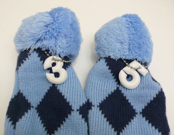 | ニット製ヘッドカバー 3点セット ライトブルーxネイビー | |||