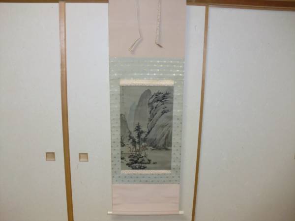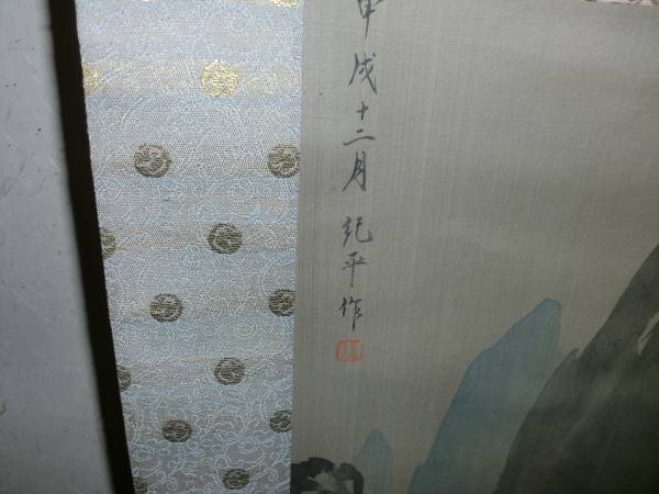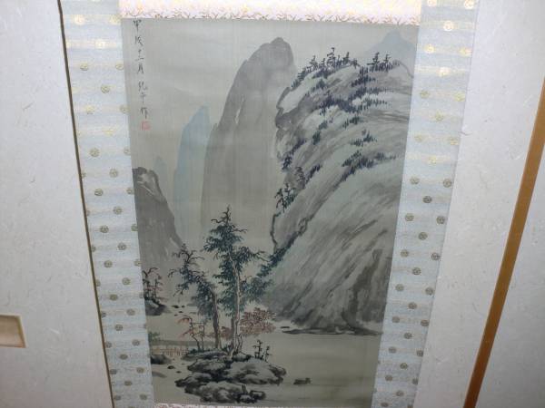 【模写】掛軸 中国画 トテモ洒落た山水圖 紀平作 美品 絹本