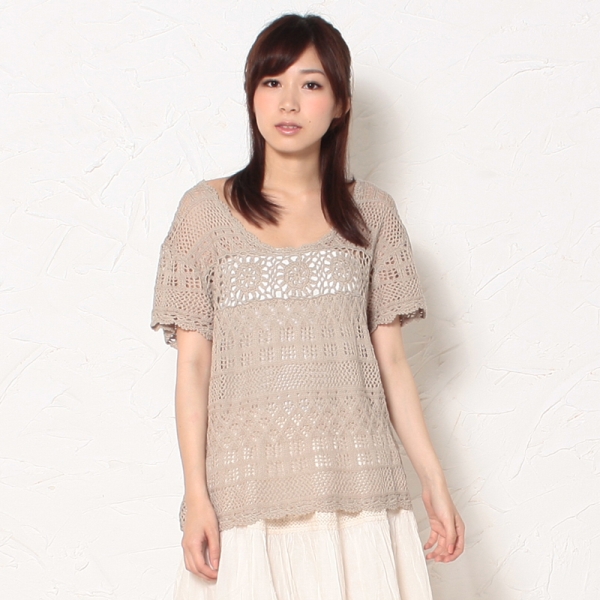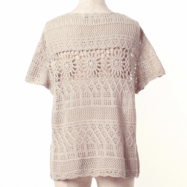 earth music&ecology アースミュージックアンドエコロジー かぎ編み かぎ針 半袖 ベスト ニット ベージュ M