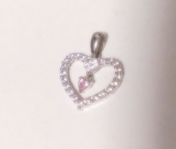 ハート型のシルバーダイヤに囲まれた中、小さいピンクのハートダイヤが入っていて可愛いです。