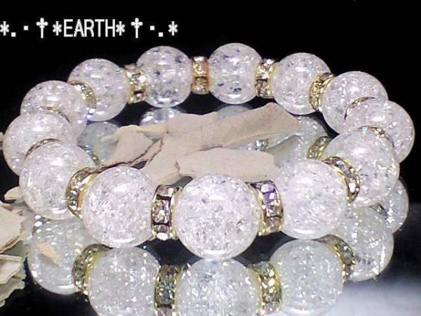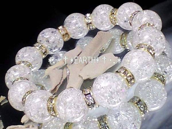 天然石★12ミリ爆裂クラック水晶AAA・金色ロンデル 数珠 | |