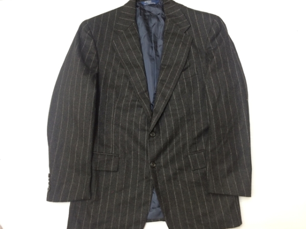 素材はWOOL、さらっとした肌触りの上質な生地感です。フロントには2つフラップポケット、裏地には右胸、左胸と裾付近にそれぞれ内ポケットが付きます。落ち着いた雰囲気のグレーとホワイトのストライプはクラシカルなヴィンテージアイテムの様な素敵な雰囲気です。ラルフローレンならではのセンスが伺えます。