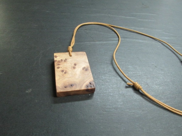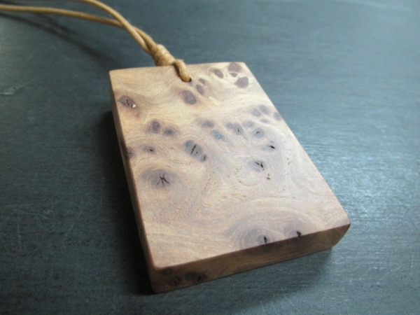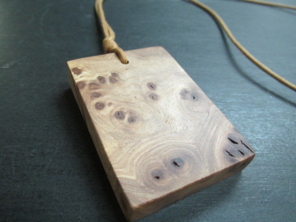 楡の木は「にれけやき」と言われるくらい欅とよく似た大径木の多い木です。又その中でも楡の瘤杢は希少で大胆な木目の美しさには定評があります。その楡の瘤を使ってペンダントを作りました。落ち着いた色合い美しい瘤杢をお楽しみください。