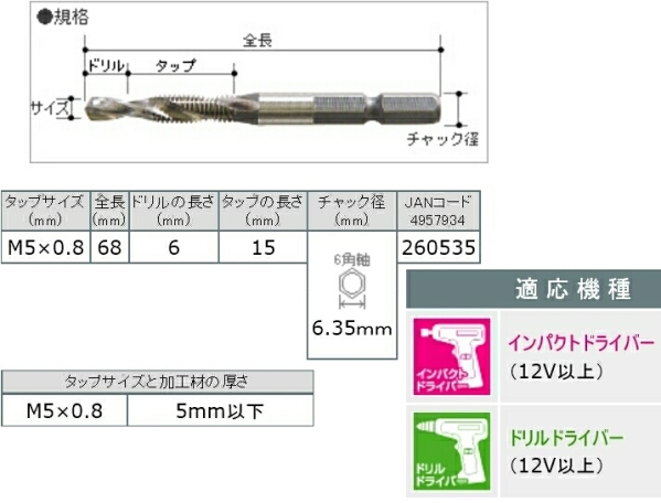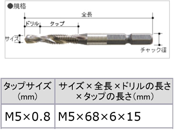 税込新品 正逆回転付インパクトドライバー対応 大西工業 6角軸 タッピングドリル(貫通穴用) ONISHI 6角軸シリーズNo.50 M5×0.8mm ビット 送料85円~ | ||||||||||||||||||||||||||