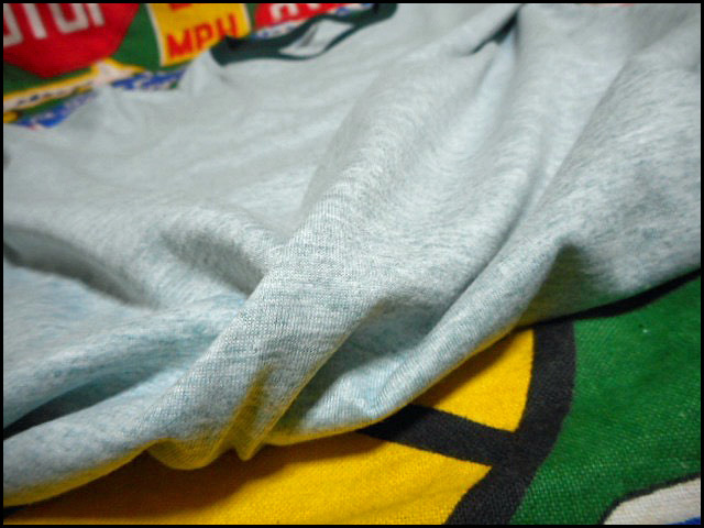 まとまって見つかった7枚のうちの1枚で、ボディーはおそらくコットン×ポリエステル、1枚で着てもらっても、シャツのインナーにもお使い頂けるTシャツです。