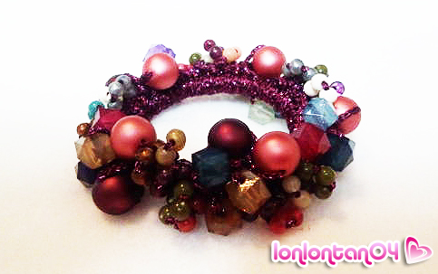 素材ビーズ/ゴム 丁寧に編込んで作成してあります。