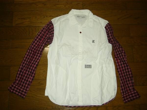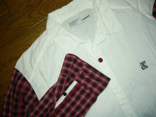 NEIGHBORHOOD ネイバーフッド 切替チェックシャツ M 白赤 薄手 BRIXTON / 長袖シャツ