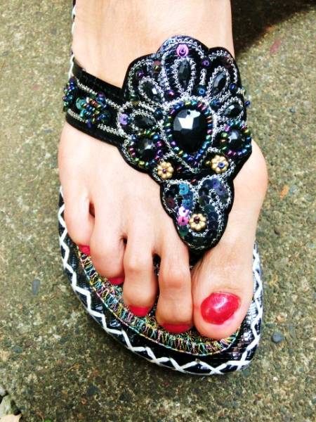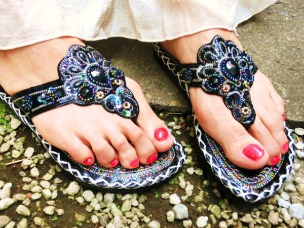 ハンドメイドの刺繍&ビーズのゴージャストングサンダルです!