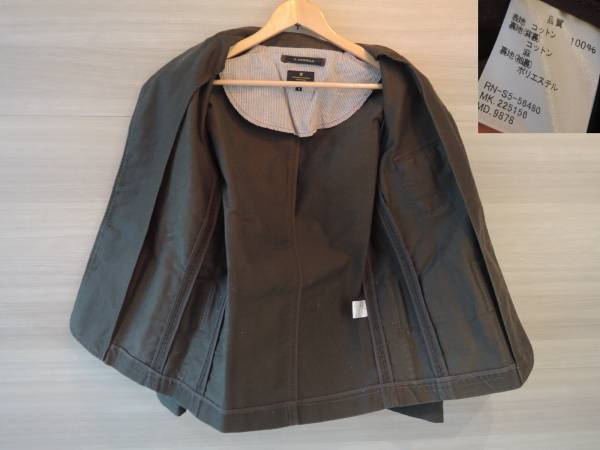 素材は表地コットン100%裏地(背裏)コットン、麻、裏地(袖裏)ポリエステルです。