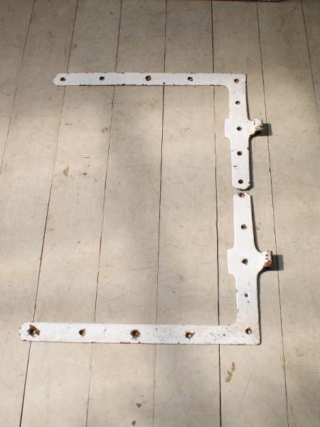イギリスの蚤の市で見つけてきた古い、鉄製のヒンジです。シャビーな風合いがとても素敵です。取り付けるだけでインパクトのあるドアになります。ショップディスプレイとしてもオススメです。   サイズ幅42cm 高さ59cm  厚み7.5cm                  年代年代推定1930~1950年代