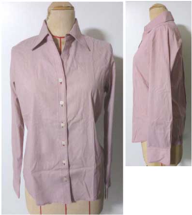 赤系ピンクストイプ 長袖ブラウス 2 ストレッチ入