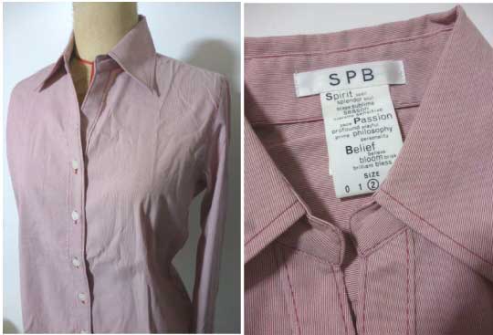 SPB ワールド赤系ピンクストイプ 長袖ブラウス 2 ストレッチ入