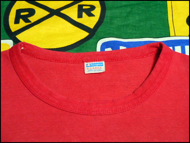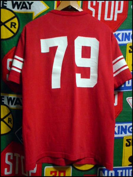 【バータグ】USA製アメリカ製ChampionチャンピオンビンテージナンバリングTシャツ70s60s60年代70年代赤WINトリコタグフットボールバータグ