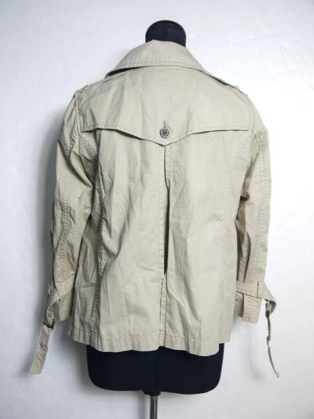 サイズ表記38で、実測で、肩幅38cm、身幅51cm、着丈(背中側の中央の衿元~裾)55cm、袖丈(肩~袖口)48cmです。