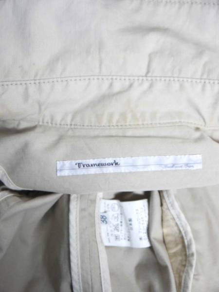 USED品正規品(フレームワークス)のFramework(日本製)の綿100%の裏地が付いていないコートです。