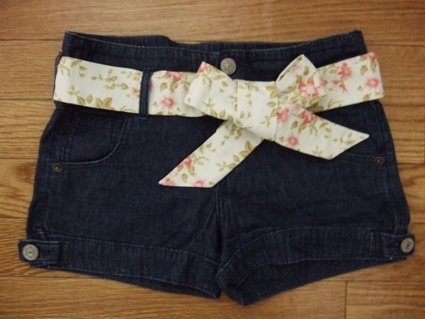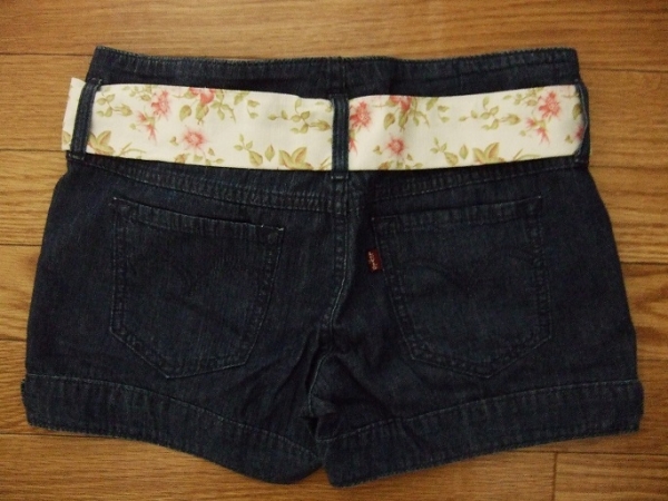 Levi's/リーバイス☆華やか 素敵! オシャレ 花リボン ベルト付 デニム ショートパンツ 紺 ネイビー S M W26☆即決! ズボン PayPay ペイペイ