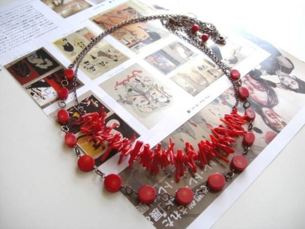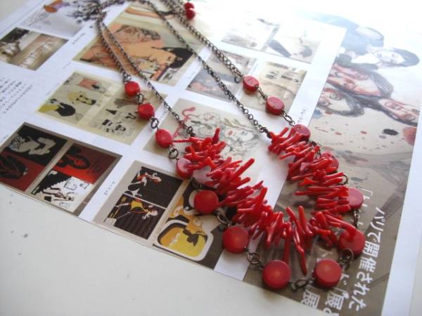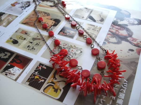 やさしいシルエット・・シリーズです♪赤いルージュ・・シックな深い赤の珊瑚のネックレス2本セットです♪さざれやコインやオーバルなどデザイン違いの珊瑚にデザインチェーンを 合わせてニューヨークモダンしています♪1センチから2・5センチ位までのさざれは華奢なチェーンを合わせました♪長さは全長78センチ位で調節自由です♪チョーカー風にされても素敵です♪10ミリから12ミリ位までのオーバルやコインの珊瑚はランダムに紡いでいます♪長さは全長82センチ位で調節自由です♪ブレスレットにされても素敵です♪それぞれ単品やブレスレットやイヤリングも出品しています♪シンプルで飽きのこないい つまでも着けられるデザインを考えて作りました!ハンドメイドをご理解頂いてノークレーム、ノーリターンでお願いします