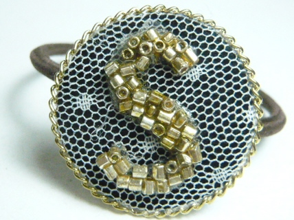 【HAND MADE】ビーズ レース イニシャル ヘアゴム
