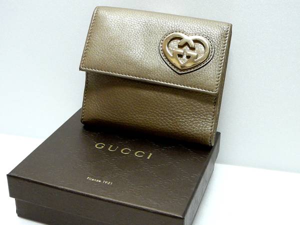 GUCCI 美品 ハートGG シャンパンゴールド Wホック 2つ折り財布 グッチ