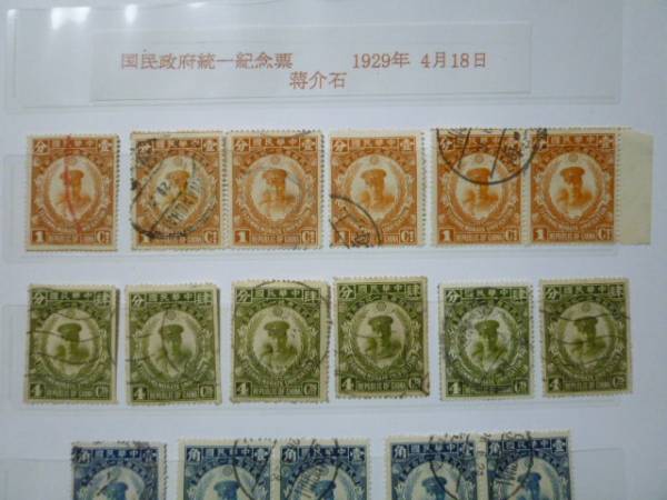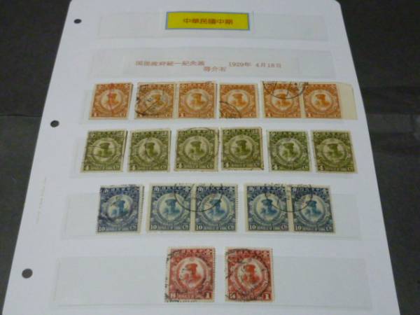 ~№25~ 旧 中国切手 1929年 紀念 政府統一 4種完 計19枚