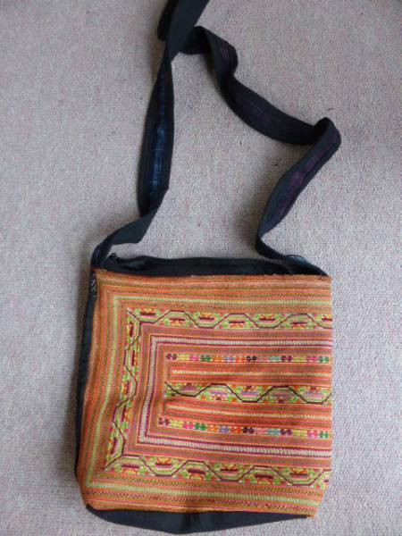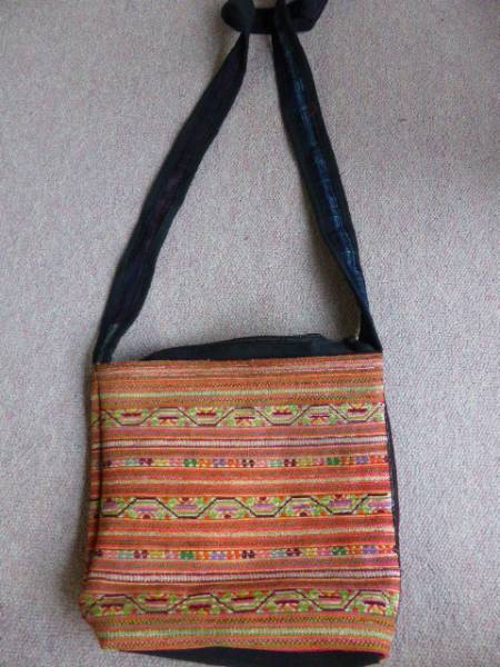 ラオスのモン族の美しいスカート生地をリメイクして作ったショルダーポーチです