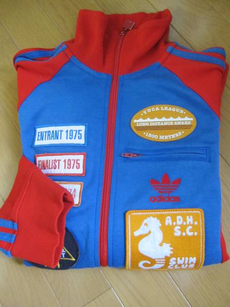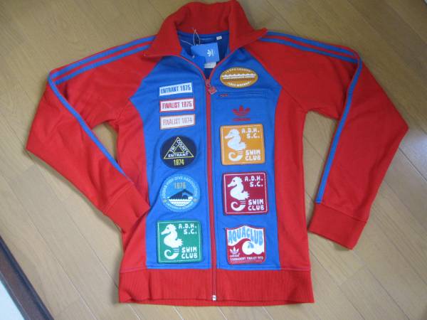 新品、限定モデル アディダスオリジナルスショップ限定スイムトラックトップです。サイズはXS、綿70、ポリエステル30%です。実寸は、身幅47、着丈62、脇下袖丈56CMです。限定、完売モデルです!!探していた方、この機会にいかがですか?
