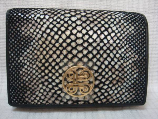 ☆新品☆ヒロココシノ/折財布お洒落なヘビ柄豚革黒系