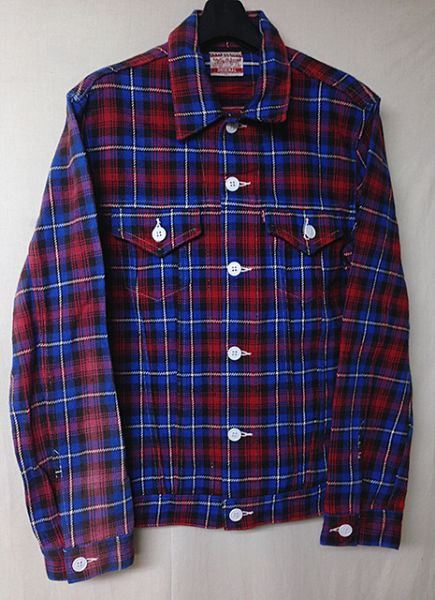 LEVI'S 70505-0055 チェックブルゾンです。厚手のコットンでしっかりとした生地です。綿100%◆サイズはLで着丈約63.5cm・肩幅約44cm・袖丈約60.5cm・身幅約50cmです。◆USEDです。右袖に若干の色褪せが有ります。◆