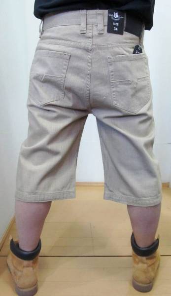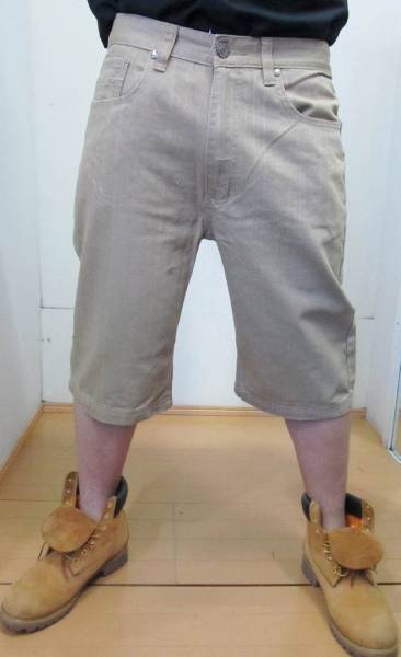Z23)VICTORIOUSスリムフィットデニムハーフパンツカーキ30B系