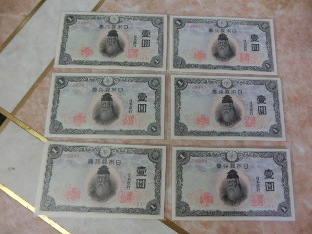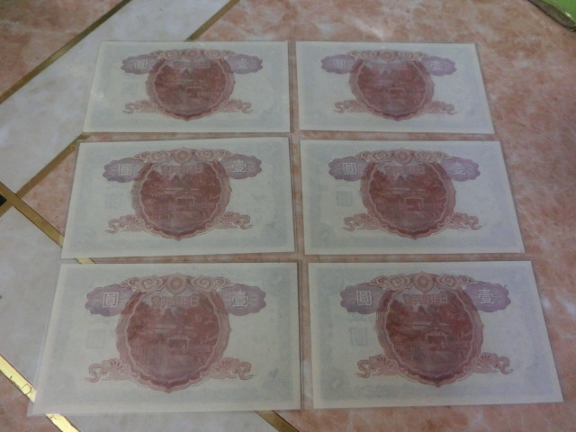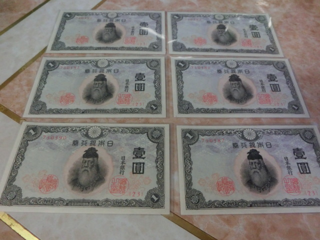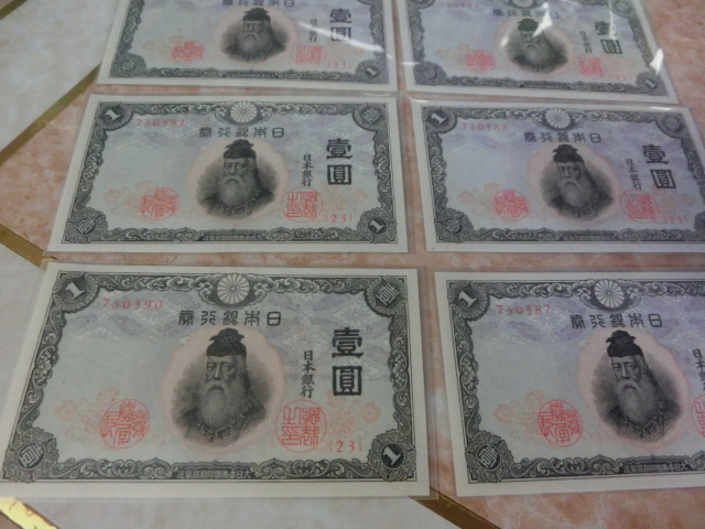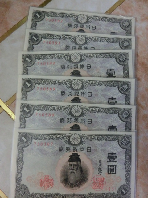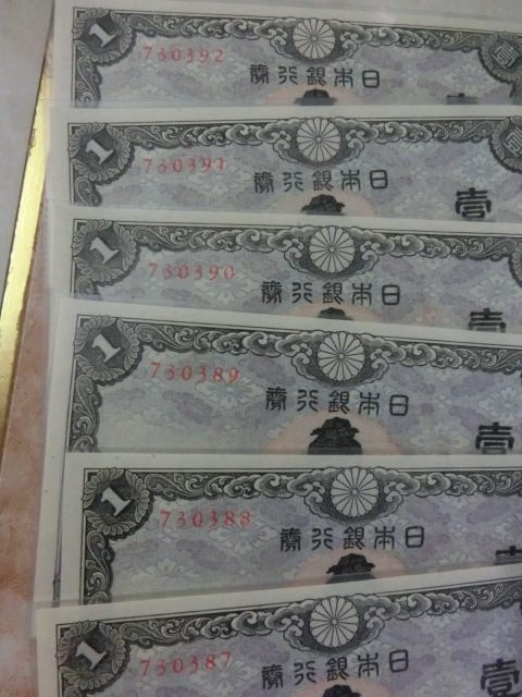 不換紙幣1円 中央武内1円の未使用・連番を6枚です。