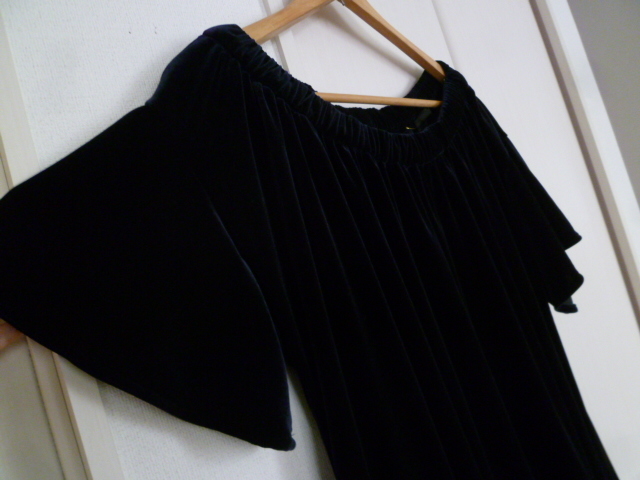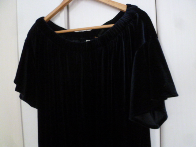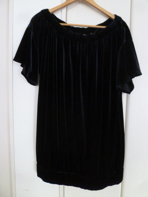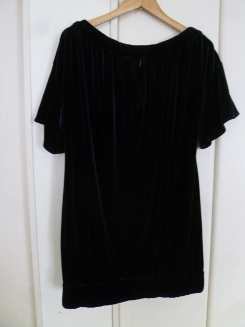 【新品】soareak/ソアリーク○青紺背中開きフレア袖ベロアロング丈トップスF/ブルーネイビー半袖カットソー○NT1125②