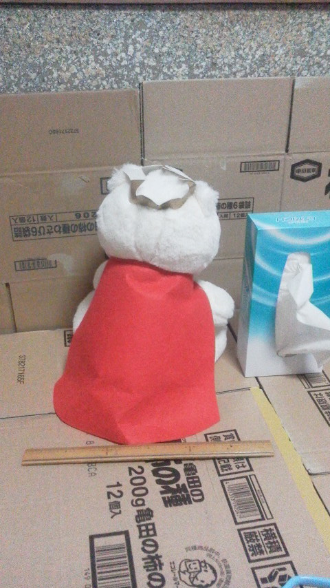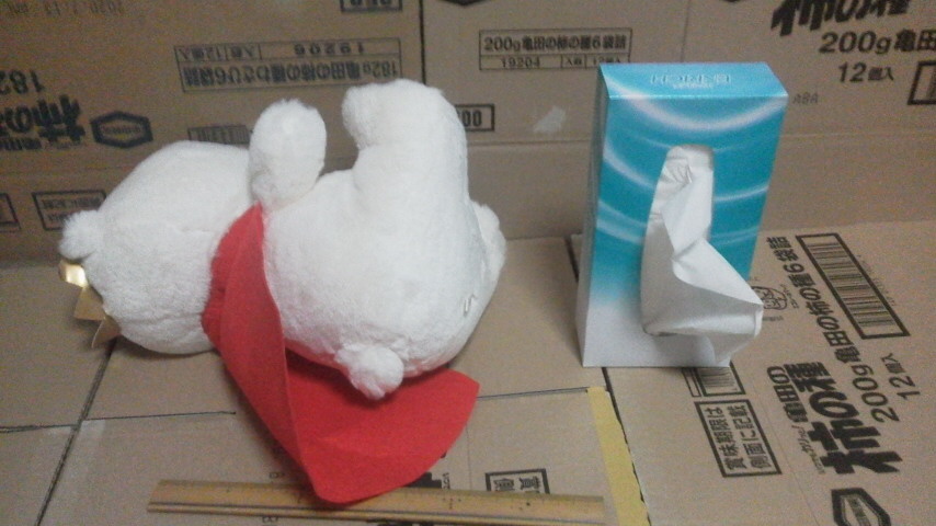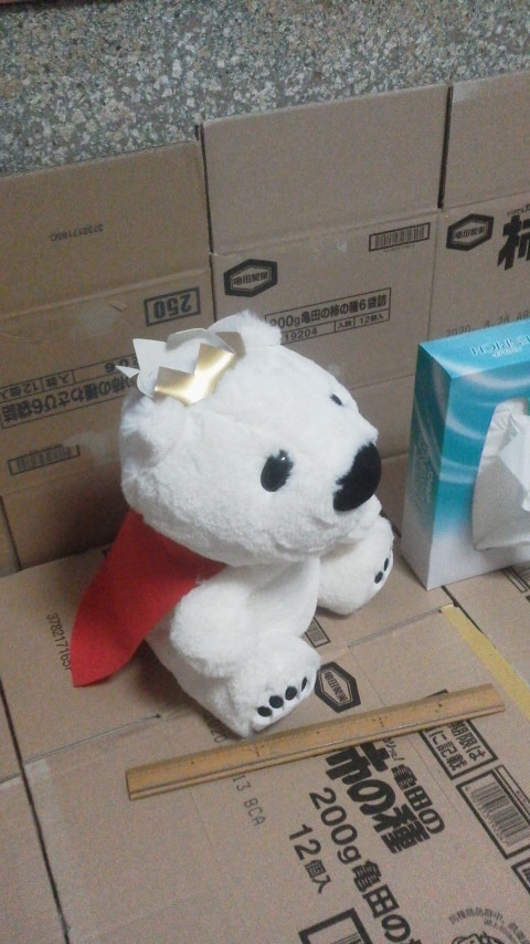 日立エアコンを購入した際にいただいた白くまくんのぬいぐるみです。