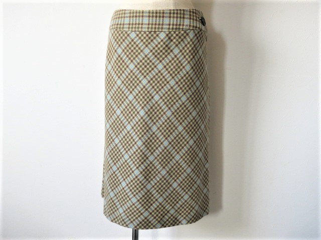 レナウンルック【KEITH】キースの高級ウールスカート、お色はライトブラウン、チェック柄です。
