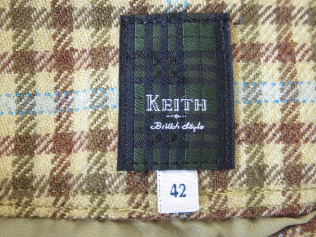■新品同様上質美品 レナウンルック【KEITH】キース高級ウールスカート【42】13号LL XL 日本製ライトブラウンチェック 送料198円 b997