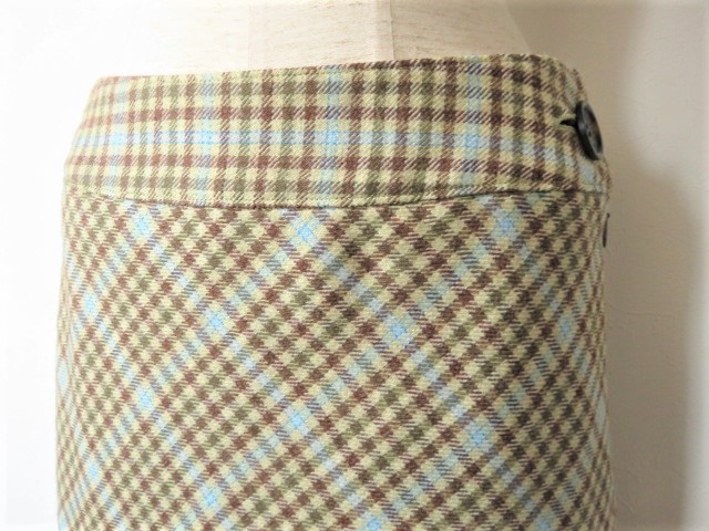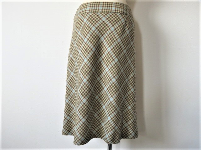 新品同様 上質美品 レナウン ルック【KEITH】キース 高級 ウール スカート【42】13号LL XL 日本製 ライトブラウン チェック 送料198円 b997