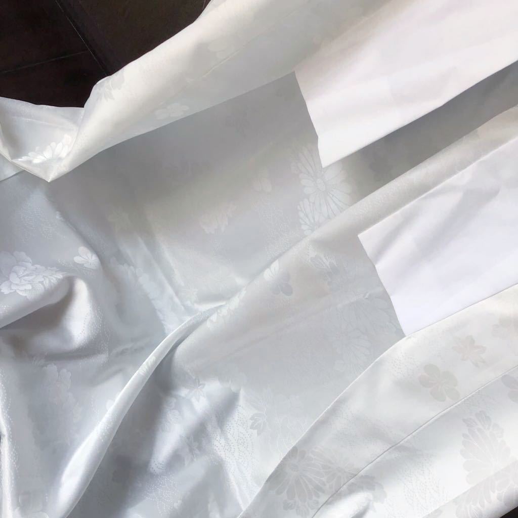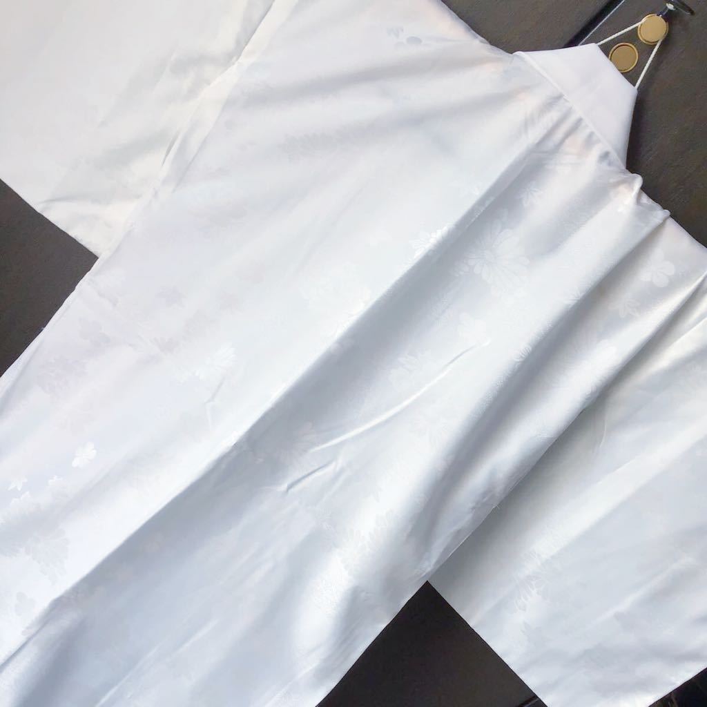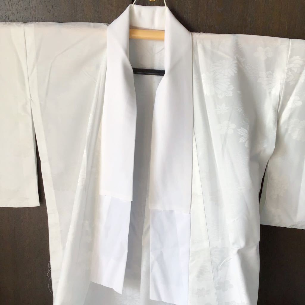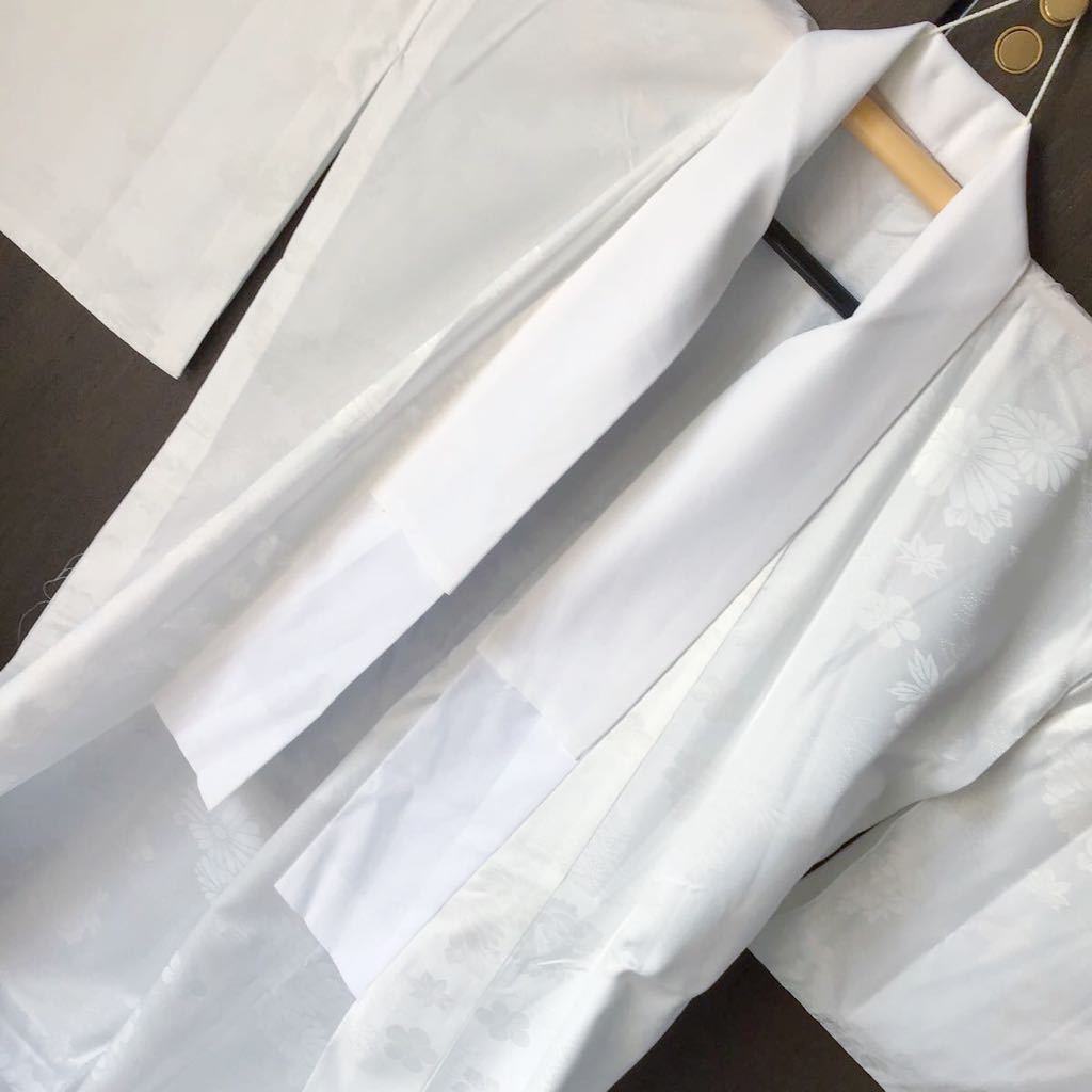 正絹ではない新品♪素敵な地模様入りの既製品の長襦袢♪しつけ糸付き♪手縫いの真っ白い半襟付きです♪