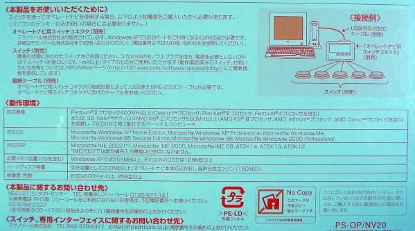 【877】 NEC オペレートナビ EX 2.0 PS-OP/NV20 未開封 上肢 障害者 不自由 障害 パソコン操作 支援 補助 PCソフト テンキー 4547394006547