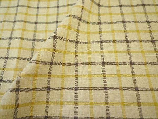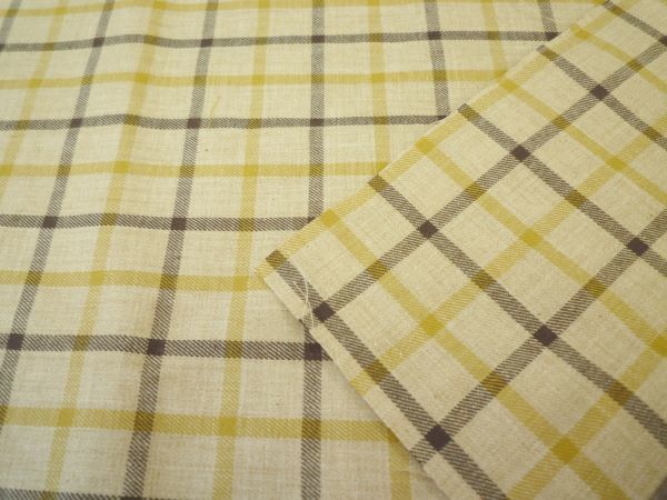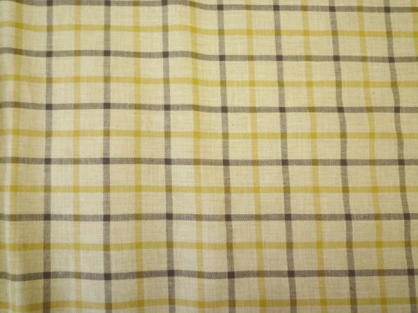 薄茶色の地に、黒と黄色のラインでチェック柄の入った柔らかい生地です。