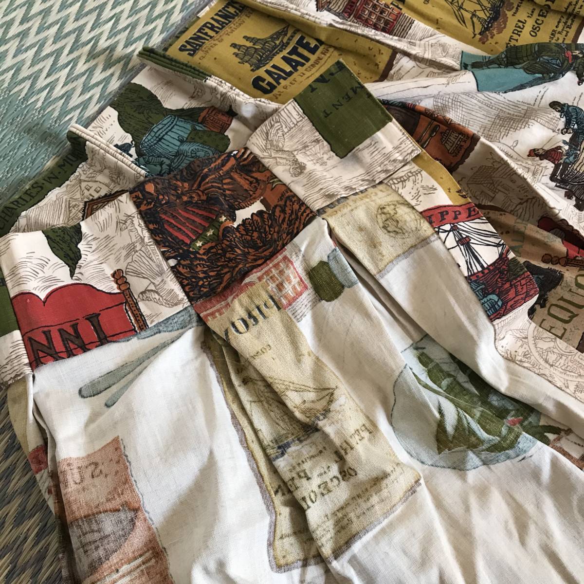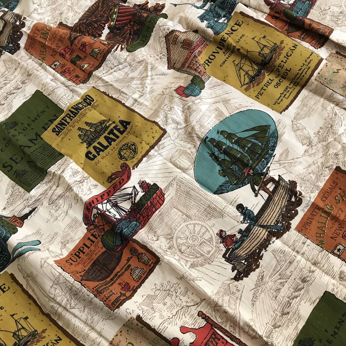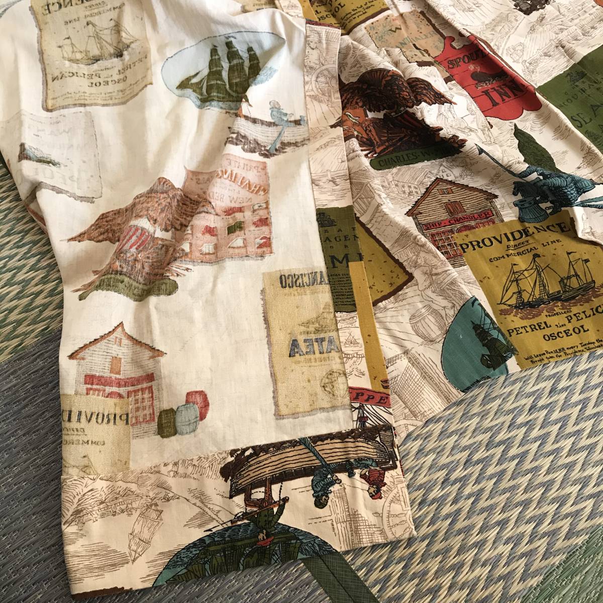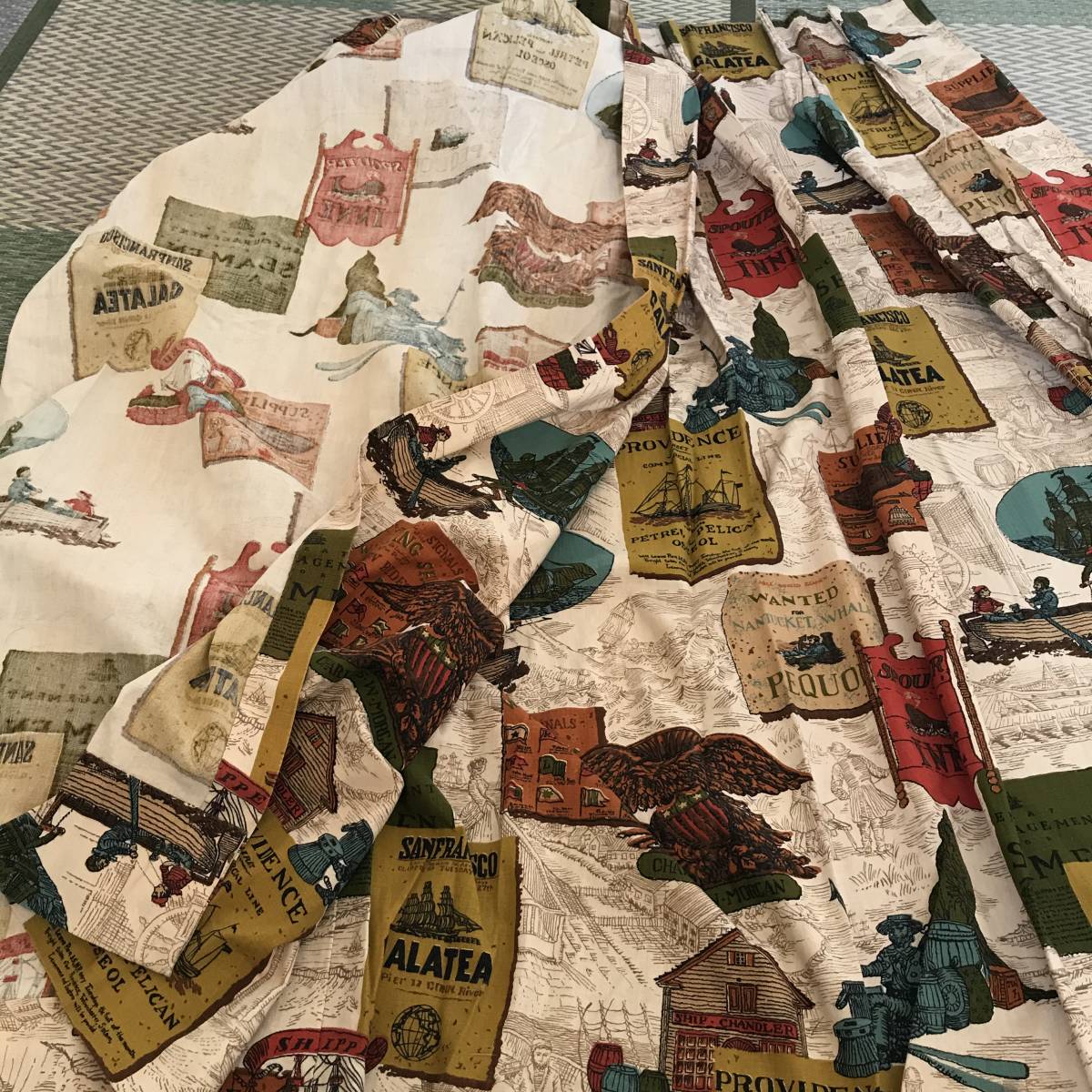 貴重!60’s~70’s USA アメリカアンティーク カーテン生地① ヴィンテージレトロ/北欧雑貨カリフォルニア星条旗アメカジカントリー古着
