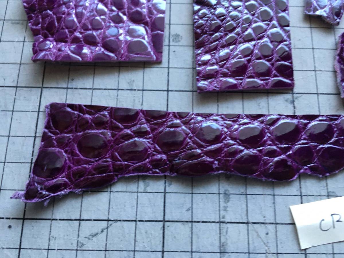 CRD-121★美色紫パープル★グレージング極上ポロサススモールクロコダイル ハギレ レザークラフト はぎれ アリゲーターキーホルダー