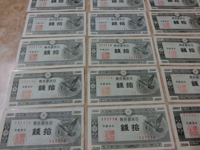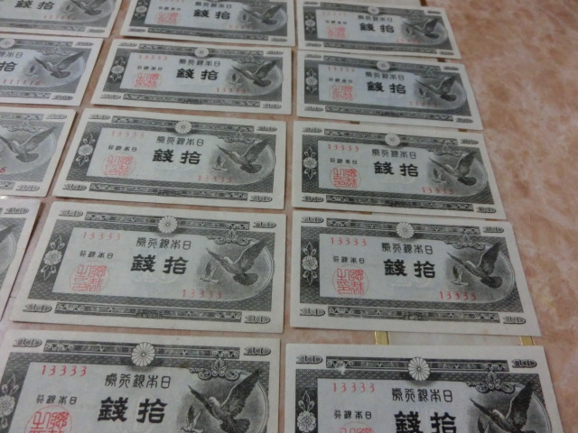 ★ 日本銀行券A号 ハト10銭 111116番・13333番 20枚 ★ No.10